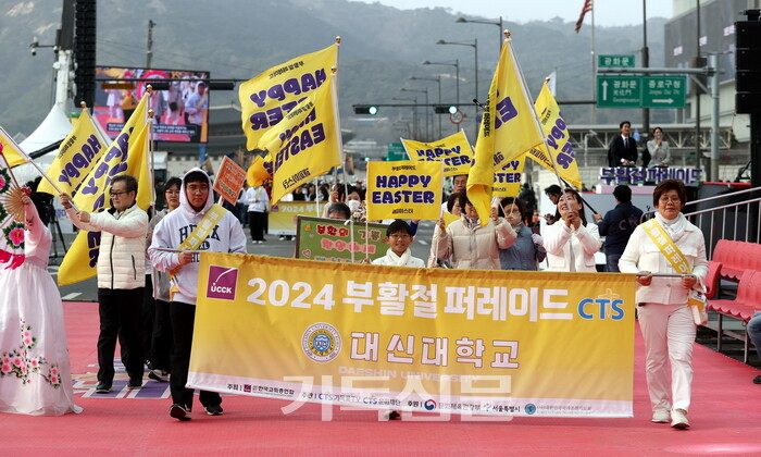 이번 행사에선 대신대학교가 사회복지학과 교수와 학생일동 30여 명이 퍼레이드에 참여했다. 이들은 부활의 의미를 담은 피켓과 십자가를 직접 들고 나아가며 부활의 의미를 전달했다.