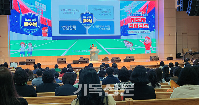 총회교육개발원(이사장:송태근 목사)이 전국을 돌며 ‘2024 총회여름성경학교·수련회 지도자 콘퍼런스’를 개최했다. 콘퍼런스는 5월 13일(판암장로교회) 대전을 시작으로, 14일(광주동산교회) 광주, 16일(대구동신교회) 대구, 18일(신용산교회)과 25일(충현교회) 서울까지 모두 5차에 걸쳐 열렸다. 특히 18일 4차 콘퍼런스는 30분 만에 접수가 마감되는 호응 속에 같은 날 오후 한 차례 추가해 진행되기도 했다. 이번 행사에 참여한 교역자와 교사가 연인원 2400여 명에 달해 다음세대를 향한 교육의 열정을 엿볼 수 있었다. 1차 콘퍼런스에 참석한 오정호 총회장은 믿음의 바통을 이어받는 교육의 중요성을 이야기하며 참가자들을 격려했다.