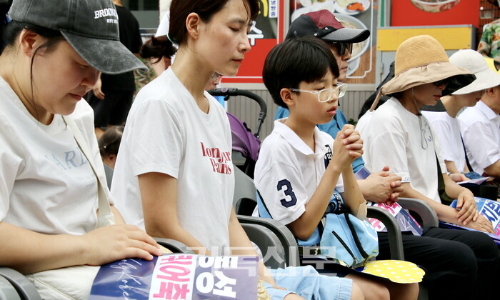 하재호 목사 사회로 기도회를 가진 참석자들은 퍼레이드를 진행했다. 참석자들은 퀴어퍼레이드 행진을 벌인 중앙로를 다시 되짚어 나아가며 동성애 반대와 건강한 가정 수호를 외쳤다.