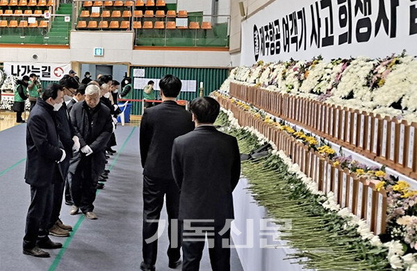 한국교회총연합(대표회장:김종혁 목사, 이하 한교총)은 12월 31일 전남 무안군 무안종합스포츠파크 실내체육관에 설치된 제주항공 사고 희생자 합동분향소를 찾아 조문했다.