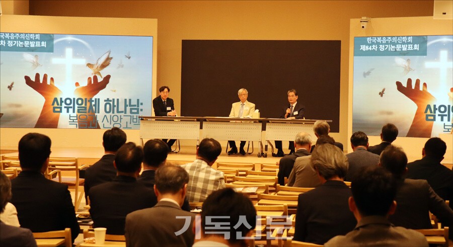 한국복음주의신학회(회장:강규성)가 제84차 정기논문발표회를 4월 26일 서울 삼일교회(송태근 목사)에서 개최했다. ‘삼위일체 하나님:복음과 신앙고백’이라는 주제로 열린 이날 발표회에는 120여 명의 복음주의 계열 학자들이 참석해 예배와 주제강연, 전체토론, 분과발표 등의 시간을 함께 했다.
